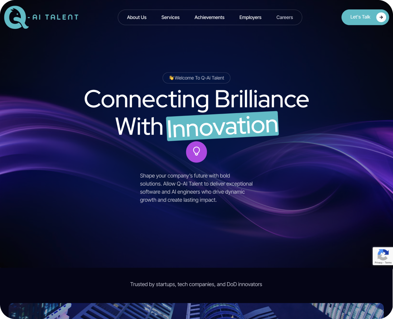Q-AI Talent is a consulting firm that connects top artificial intelligence talent with companies looking to scale their AI capabilities. The founders needed a sleek, professional website that appealed to both enterprise clients and elite talent—while reflecting innovation, trust, and clarity.