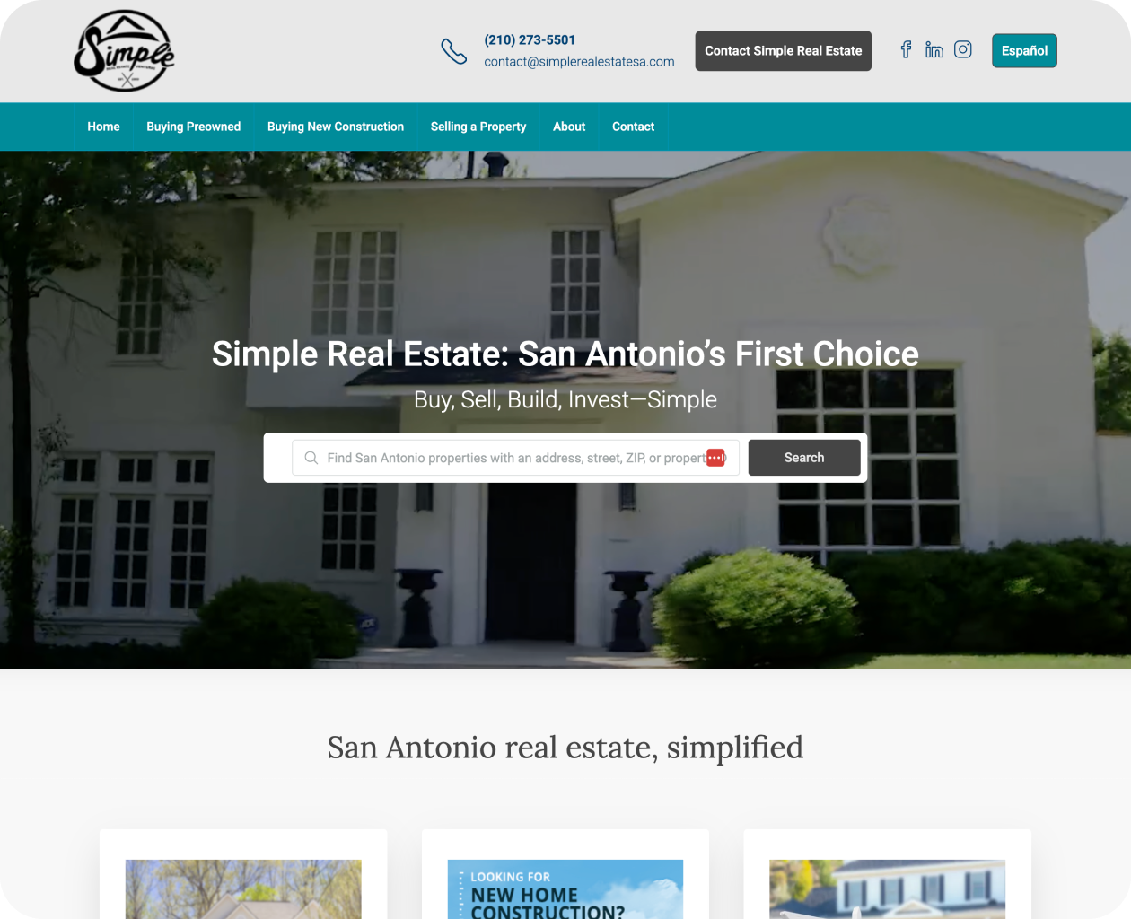 Case StudySimple Real Estate SA is a home buying business in San Antonio, Texas, that specializes in helping homeowners sell their homes quickly for cash. The client needed a trustworthy, clear, and conversion-optimized website to generate leads and establish a strong online presence.